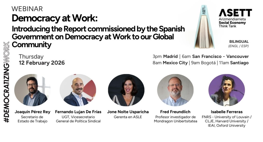 We’re thrilled to announce the launch of the next edition of the #DemocratizingWork Global Workshop Series, co-organized with ASETT. The first seminar of the series will host stellar speakers to discuss the Spanish Report. To register, fill this form.