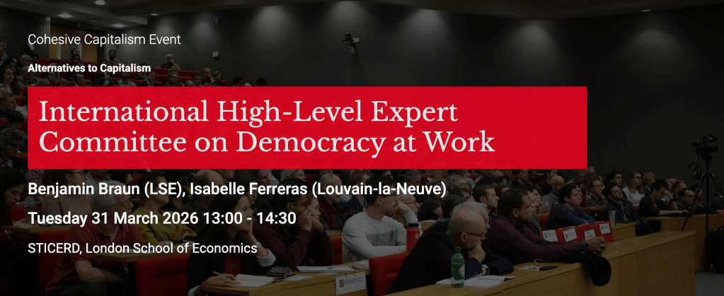 Isabelle Ferreras, and Benjamin Braun, co-author the report and will present and discuss their findings at an informal seminar and lunch of the Alternatives to Capitalism research cluster of the Programme on Cohesive Capitalism The seminar will cover the implications of their findings and how they might be applied to contexts outside of Spain.